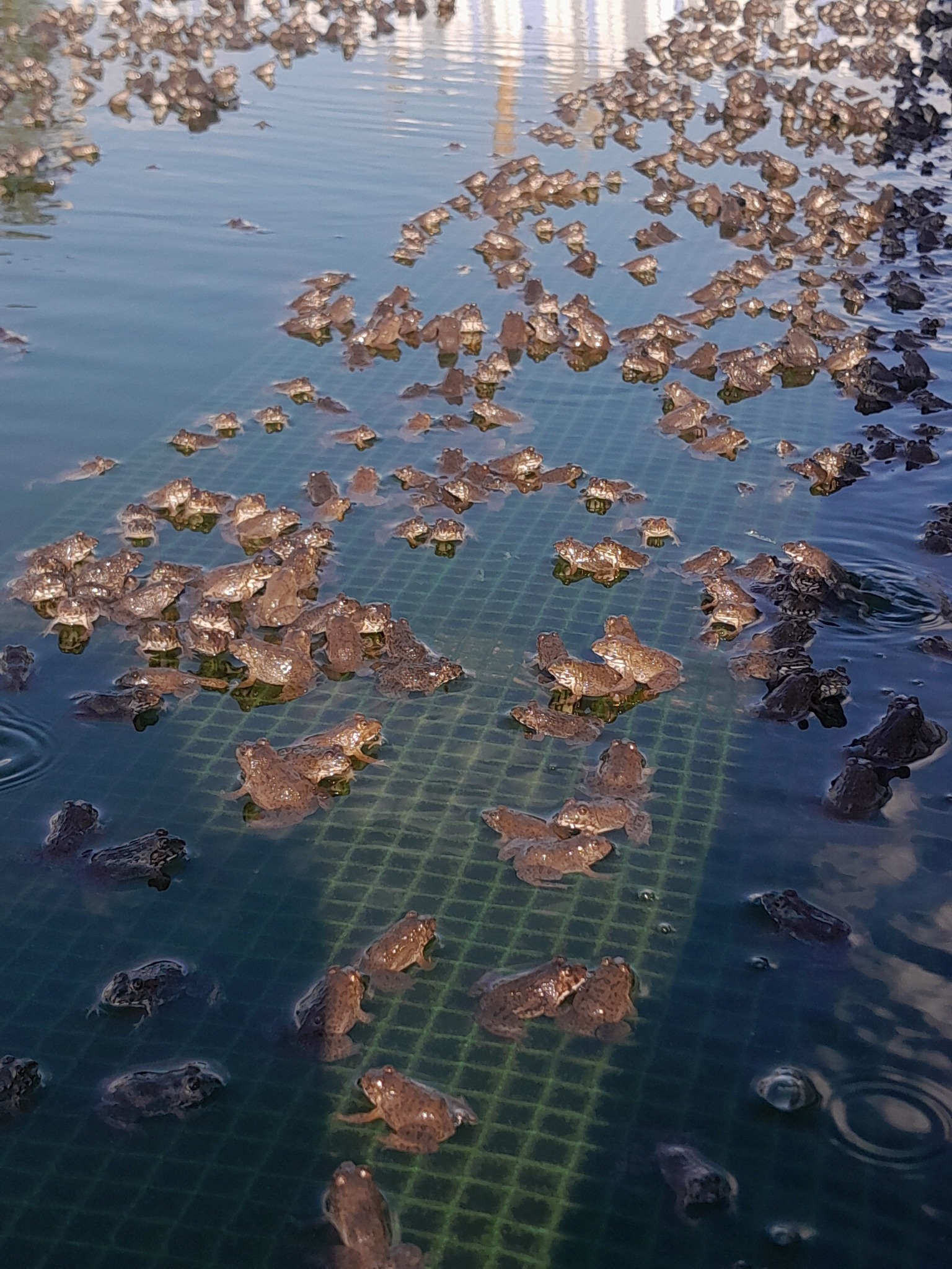 - Vệ sinh ao hồ thay nước cho ếch hằng ngày: bà con thường xuyên thay nước cho ếch hằng ngày. Một ngày 2 lần trước khi cho ăn, dùng vòi nước xịt nhẹ cho chảy hết chất bẩn trong áo. Trong quá trình thay nước bà con cần để ý tránh ếch dồn về 1 gốc hồ và đè lên nhau. Khi ếch dồn về 1 gốc bà con nên dùng nước tưới nhẹ lên cho nó tản ra. Cần định kì dùng thuốc ODINE hay thuốc tím xịt khử trùng cho bể nuôi 1 tuần 1 lần.